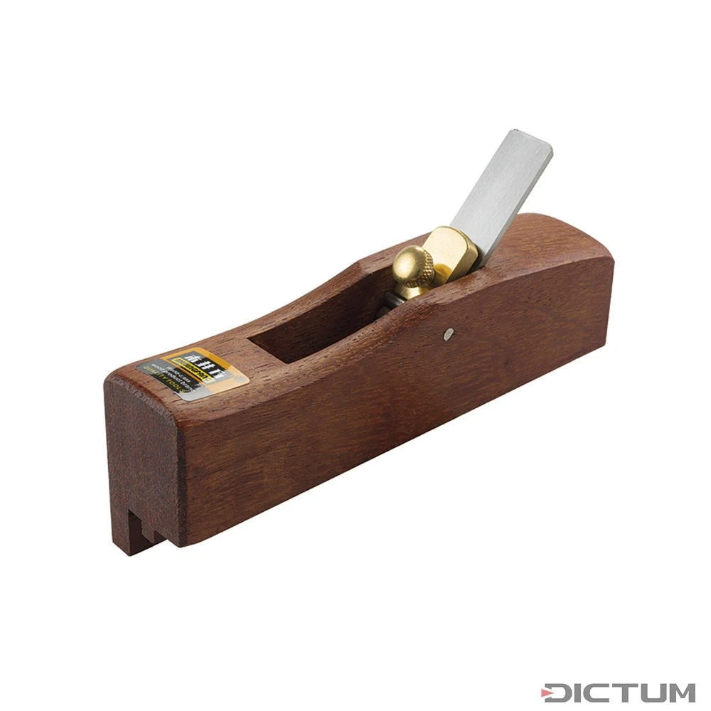 La forme de base de ce rabot chinois est semblable à celle du Kanna japonais. Mais tandis que ce dernier est conçu pour le travail en tirant, les rabots chinois peuvent être aussi bien poussés que tirés. Pour améliorer la pression d’appui, les modèles plus grands sont munis d’une tige transversale caractéristique qui est retirée pour le travail en tirant. Les fers sont fixés par une cale ou un couvercle. Les corps de rabot légèrement cintrés sont fabriqués en redwood d’Indonésie*. Les surfaces non laquées sont traitées et polies avec un grattoir. Les fers de rabot en acier rapide très résistants à l’usure et d’une grande dureté (env. 64 HRC, sur les rabots spéciaux en acier au carbone env. 58 HRC) font de ces rabots chinois des outils de service robustes aux qualités esthétiques. Sauf mention contraire, l’angle d’inclinaison du fer et donc l’angle de coupe est de 40°.