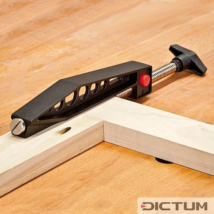 Cette pince, conçue spécialement pour le gabarit de forage poket hole UJK, dirige la pièce avec précision pour le vissage. La pointe est introduite dans le trou poket hole foré et serrée à l’aide de la pince. L’assemblage est alors prêt et peut être vissé dans le prochain trou. Pour s’adapter rapidement à toutes les épaisseurs de matériau, le pas de vis fin dispose d’un système de démontage rapide. Pour ne pas reposer sur l’établi, le manche pivotant est muni de crans d’attache. Compatible également avec d’autres gabarits poket hole. Longueur de serrage environ 90 mm.